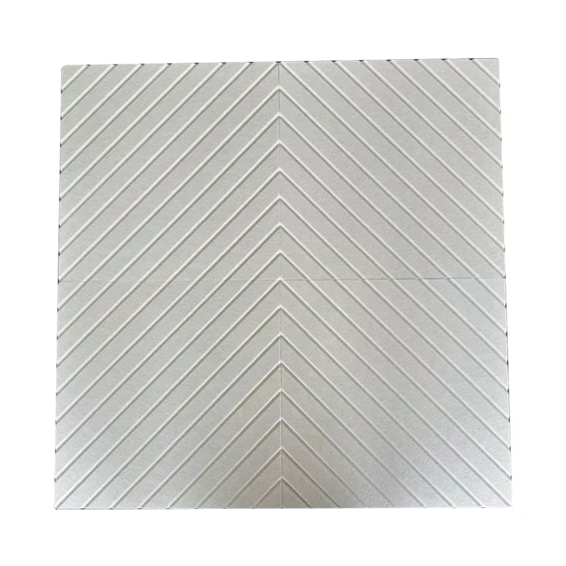 1. Miljövänlig och säker: Beige V-räfflade akustikpaneler i PET-filt är gjorda av 50 % återvunnen polyesterfiber, fria från kemiska lim, och uppfyller noll-formaldehydstandarder med MSDS-certifiering, vilket säkerställer sinnesro för användning i hem, sjukhus och skolor, skyddar familjens hälsa och minskar bördan;
