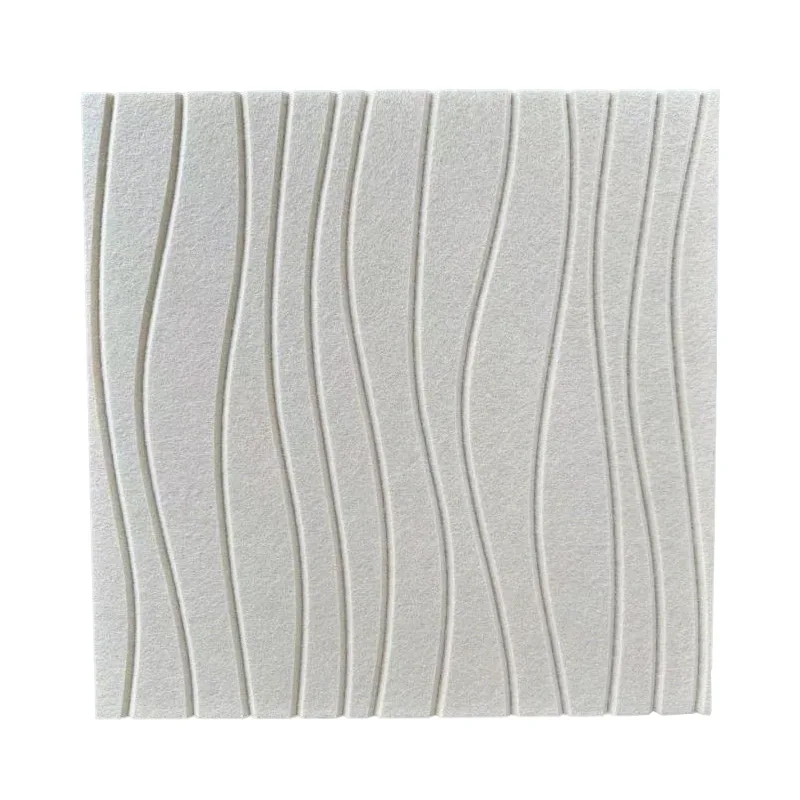 Våra Beige Water Wave PET-filt akustiska paneler använder avancerad termisk bindning och nålstansningsteknik för att säkerställa överlägsen hållbarhet och akustisk prestanda. Varje parti av produkter genomgår rigorösa kvalitetstester för att säkerställa konsekvens och höga standarder.